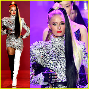 Paris Hilton looks so cool in a Cruella De Vil-inspired outfit during the Disney Villains x The Blonds fashion show held during New York Fashion Week on Friday (September 7) in New York City.